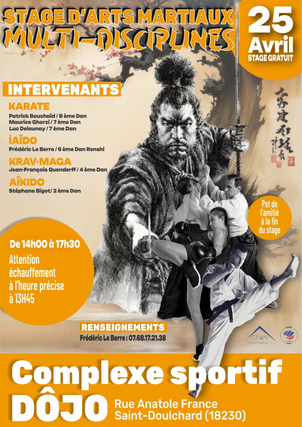 Rendez-vous le 25 avril 2026 au dojo (complexe sportif, rue Anatole France à Saint-Doulchard) pour un stage d’arts martiaux exceptionnel !